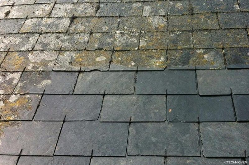 - Utilisation de produits fongicides et algicides pour éliminer les mousses, lichens et algues en profondeur.